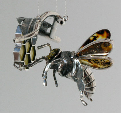 Are you looking for beautiful unique jewellery made of silver and 40 million years old Baltic amber? If so, then we are the company to provide you with top quality products and reliable service. We offer a wide range of different products, including a full range ladies and gents jewellery: ear rings, ear clips, pendants, necklaces, collars, brooches, brooch pendants, bracelets, rings, gents signet rings, tiepins, cufflinks, bolos, as well as utilitarian items such as letter openers, charms and cutlery. Moreover, we decorate functional glass items (vases, glasses, carafes etc.) with unique designs. We buy the glass ourselves or decorate the items provided by customers. If you wish, we can design and make unique items - only for you. In addition to decorative and functional jewellery, we offer exclusive silver and amber exhibits for collectors, galleries and museums. They are absolutely unique - no design is ever repeated.