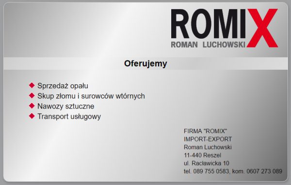 ROMIX Import-Export Roman Luchowski has been operating on the market for 25 years now. We’re a direct importer of the following products from Russia, Belarus and Ukraine: boards, firewood, wood pellets, ... more